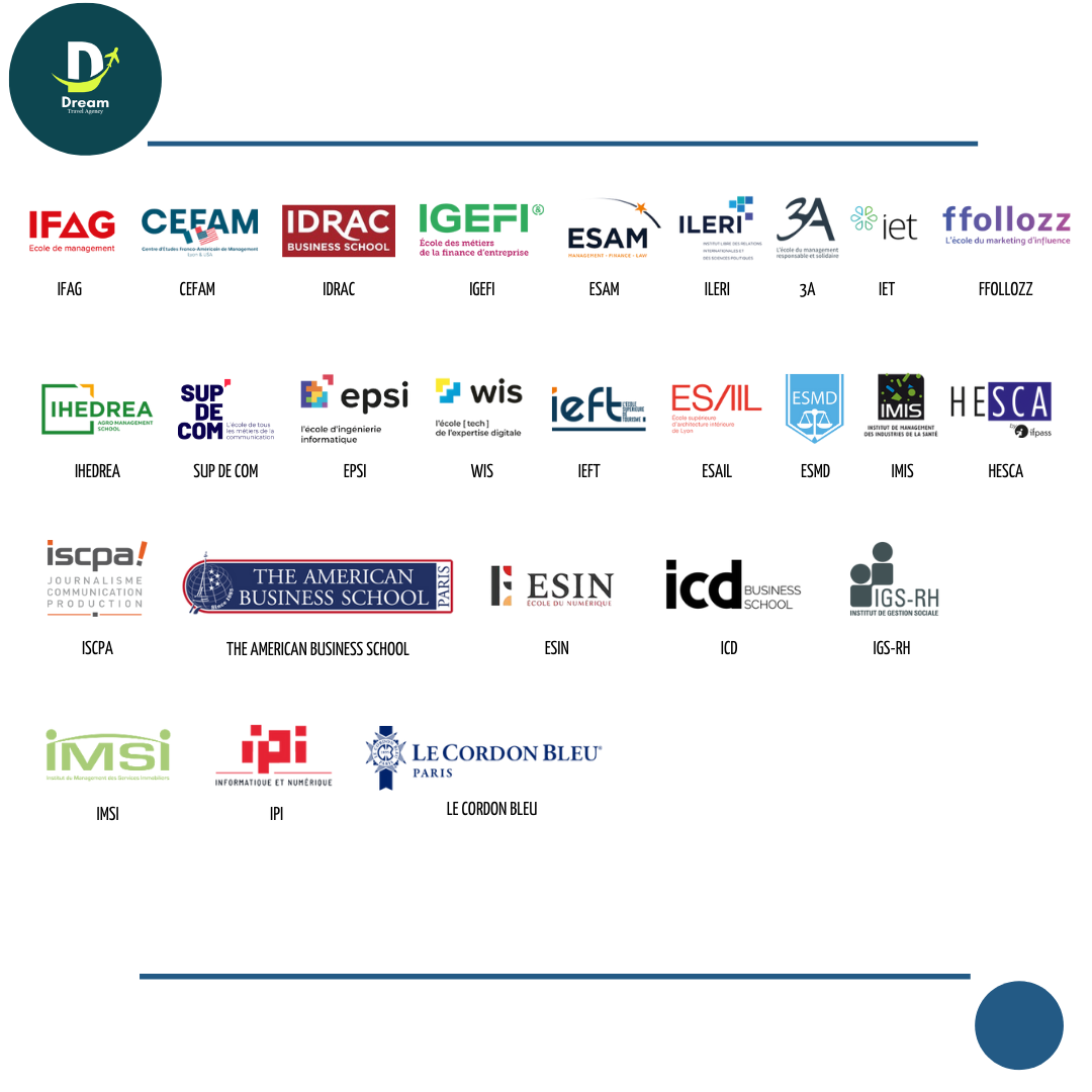 En nous associant, vous bénéficierez d'un accès exclusif à des opportunités de formation et de carrière dans des domaines tels que la gestion, le marketing, la finance, l'ingénierie et bien d'autres. Nous sommes convaincus que nos partenariats avec les institutions françaises vous offriront une expérience enrichissante et des perspectives de carrière sans précédent.